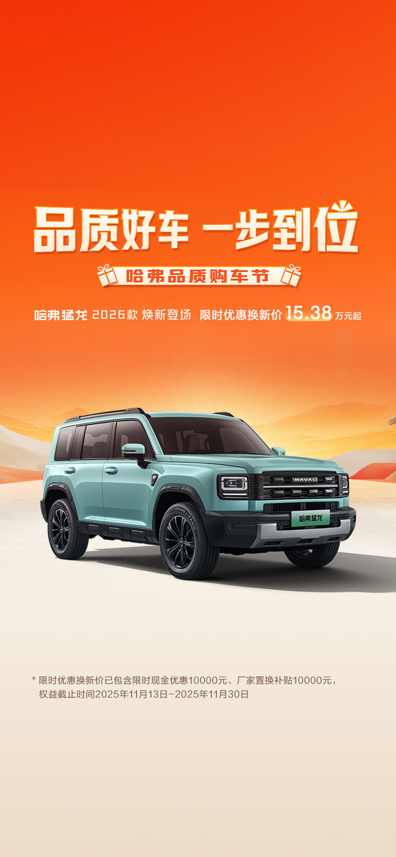 ⑦ 金融礼由长城滨银汽金提供,年化利率为单利;限时优惠换新价已包含限时现金优惠、厂家置换补贴;